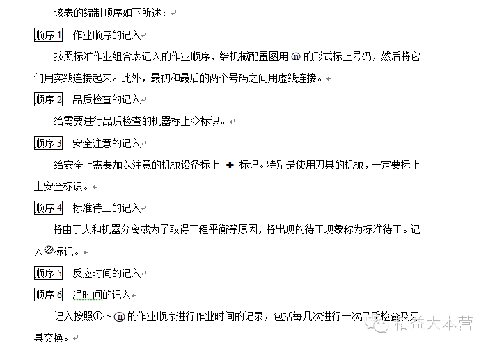 (5)标准作业的制定方法 图5-2是例表,编制标准作业表时,参照该表比较进行。