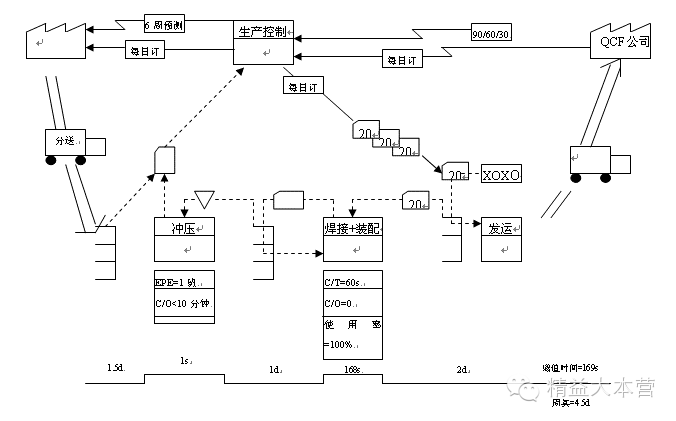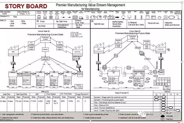 我们画出价值流现状图的目的就是要使当前生产状况所存在的浪费用画图和计算的方式充分显现出来,找出原因,采取措施逐步完善。价值流图析未来状态图就是使得当前价值流变成精益的价值流。