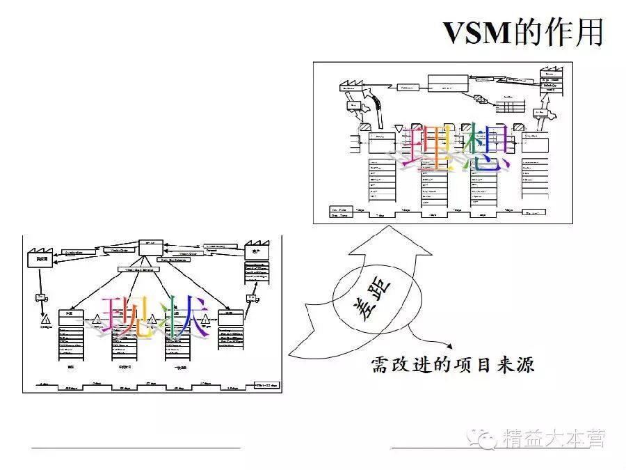 VSM运用精益生产的工具和技术来帮助企业理解和精简生产流程,它的目的是为了辨识和减少生产过程中的浪费。VSM往往被用作战略工具、变革管理工具。从购进原材料的那一时刻,VSM就开始工作了,它贯穿于生产制造所有流程、步骤,直到终端产品离开仓储。不仅如此,服务业亦可使用VSM进行改善活动。