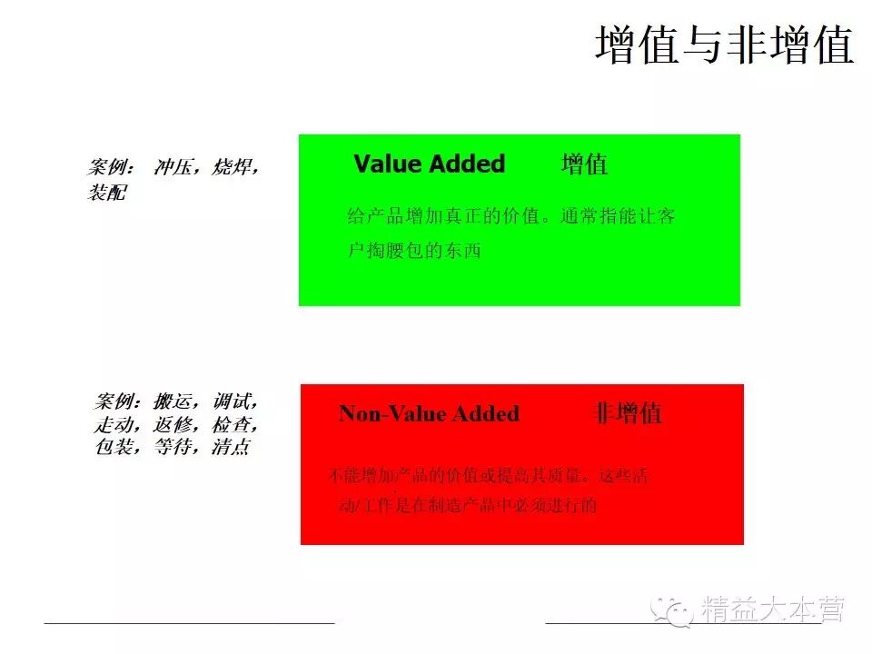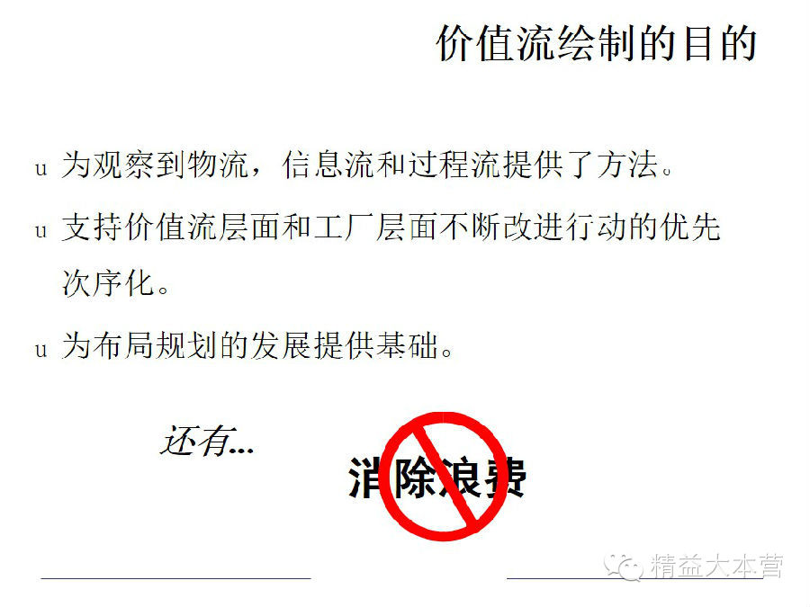 实现精益生产管理,最基本的一条就是消灭浪费,而在企业的生产经营活动中,要消灭浪费,就必须判别企业生产中的两个基本构成:增值和非增值活动。统计研究发现,企业生产活动中,增值活动约占企业生产和经营活动的5% 。必要但非增值活动约占60% ,其余35% 为浪费。价值流管理就是通过绘制价值流图,进行价值流图分析来发现并消灭浪费、降低成本,赢取最高的边际利润。