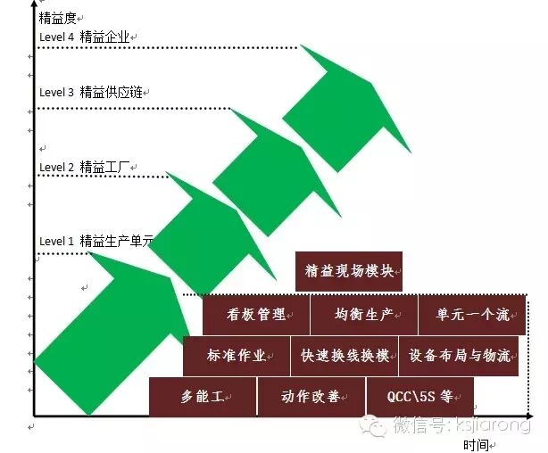 模型解析: 精益的本质是创新和复制的成功: 1) 创新——生产单元创新——精益现场 2) 精益现场——工厂复制+创新——精益工厂 3) 精益工厂——供应链复制+创新——精益供应链 4) 精益供应链——产业链复制+创新——精益企业 前一个阶段都是后一个阶段的基础,没有前一个阶段的实施尤其是人才的培养将无法完成下一个阶段的任务。而且精益如果想取得成功,首先至少能够整合全体供应商,然后再逐次展开整合整个供应链,才能够获得如丰田般的成功。