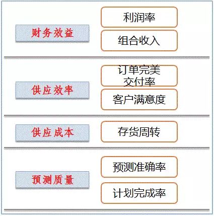 今天要介绍的S&OP绩效测评方式是以BSC为测评体系框架,从财务、客户、内部运营与学习成长方面设定指标,指标的选项可以参考SCOR里面非常完善的指标体系和定义。
