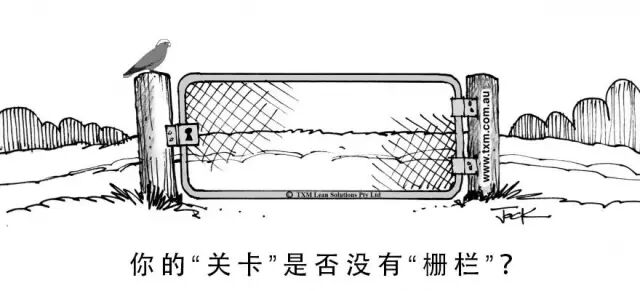那么,如何在你的“关卡”周围建立有效的“栅栏”,让你的精益业务流程有效且高效地运作呢?一个解决方案就是使关卡可视化。另一个解决方案是减少关卡数量,以过关准则取而代之。